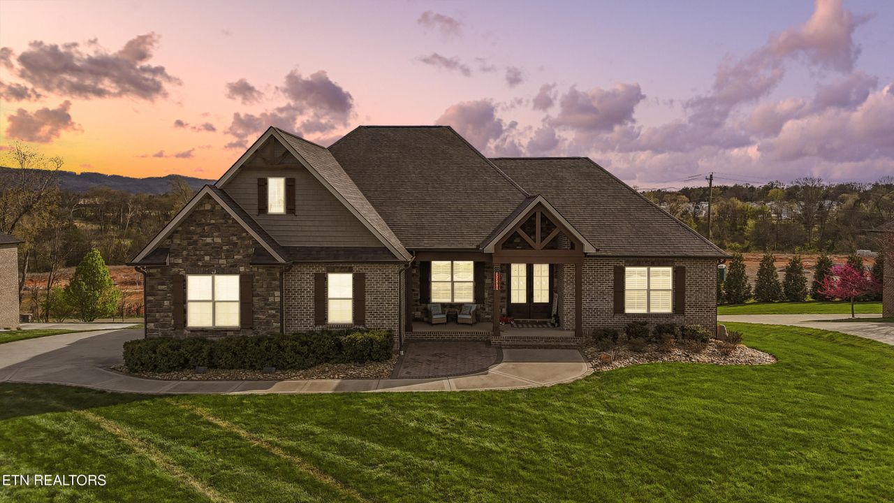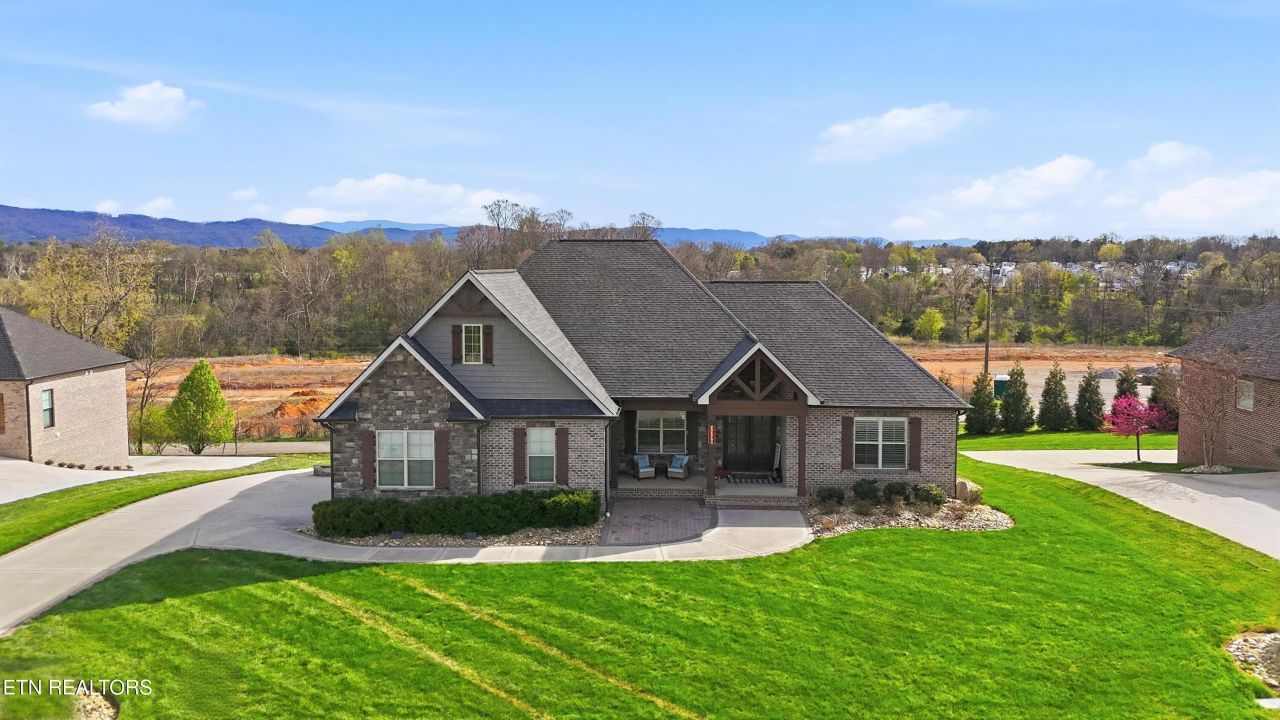 Meticulously maintained and elegantly updated, this stunning all-brick residence offers over 4,000 square feet of beautifully designed living space. Featuring 4 bedrooms, 3.5 baths, 2 kitchens, 4 garage spaces and an office, this property blends timeless craftsmanship with modern comfort in one of the area's most desirable locations in East TN!The main level welcomes you with elegant details including crown molding, plantation shutters, hand scraped hardwood, coffered ceilings that add depth, sophistication, and more. The spacious living area centers around a cozy gas stone fireplace, creating a warm and inviting atmosphere. The open-concept layout flows seamlessly into the dining area and kitchen, perfect for entertaining or everyday living. The kitchen is a dream, showcasing newer appliances, granite countertops, tile backsplash, an island with breakfast bar, and abundant cabinetry. The large primary suite is a true retreat, featuring trey ceilings, a walk-in closet, and a beautifully tiled bathroom with a walk-in shower. Plumbing is already stubbed for a tub, offering the option to customize the space further. The split bedroom floor plan provides privacy, with a guest en-suite that includes a walkthrough bathroom and separate vanities for each guest bedroom. The large walkout basement includes a second kitchen, fourth bedroom, bathroom, and a newly finished office - making it ideal for separate living quarters, a guest suite, or multi-generational living. This home also offers a large two-car garage on the main level and a tandem two-car garage on the lower level, providing ample parking and storage space for vehicles, hobbies, or recreational equipment. Want to soak in some views of the Great Smoky Mountains? Step right outside to the screened back porch on the main level or the stamped patio on the lower level and enjoy peaceful mornings or relaxing evenings. Located in a quiet, sought-after neighborhood, this home offers access to the subdivision walking path that surrounds a 5-acre stocked pond, perfect for leisurely strolls and outdoor enjoyment. Located less than 10 minutes from interstate I40, downtown Maryville, and Foothills Parkway! With its exceptional location, thoughtful updates, and impeccable condition, this property is a rare find. Contact us to book your showing today!