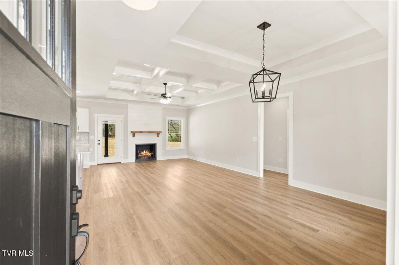 Welcome to your newly constructed dream home, perfectly crafted where modern meets comfort! This absolutely stunning 1,630 sq ft single-level home is a masterpiece of modern living. This particular model offers an inviting and open floor plan that seamlessly blends style and functionality featuring coffered ceilings with the most incredibly spacious back (covered) patio! With three generously-sized bedrooms and two full bathrooms, this home provides ample space for both entertainment and relaxation. The heart of the home is its chef-inspired kitchen, featuring elegant quartz countertops, sleek stainless steel appliances, soft-close cabinetry, along with a beautiful island that overlooks the living room. Retreat to the oversized owner's suite, boasting a coffered ceiling and accent wall, complete with a walk-in closet, a tiled shower and double vanity sinks. The cozy living room, with its charming shiplap gas log fireplace, creates a warm and inviting atmosphere for gatherings or relaxation, while two additional spacious bedrooms offer ample closet space, ensuring comfort for family or guests. The final details of the home include a laundry room with additional cabinets, a spacious backyard with an incredible back patio, LVP flooring throughout and tile in the bathrooms. Skyline Landing is a hidden gem and features picturesque views with sidewalks, street lights and landscaping at the entrance that is second to none. It is located just 5 minutes from downtown Jonesborough, 20 minutes to Johnson City and 30 minutes to both Kingsport and Greeneville. The HOA fee is $150 per year with a $50 transfer fee. One year builder's warranty included. Taxes to be assessed. All information deemed reliable but subject to buyer/buyer agent verification (completed pictures to follow).